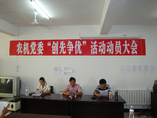 为调动基层党组织和广大党员的积极性、创造性,充分发挥基层党组织的战斗堡垒作用和共产党员的和先锋模范作用,双辽市农机局在建党89周年之际,在党的基层组织和党员中深入开展创先争优活动。局机关及所属三家事业单位召开创先争优活动动员大会的党员共计80余人参加了此次会议。会上副局长许明宣读了《农机局创先争优活动实施方案》。局党委书记、局长张晓元同志对创先争优活动作动员讲话,并进行一次党课辅导。号召广大党员干部要不断增强政策意识、大局意识、服务意识、机遇意识和责任意识。“实践无止境,创新无止境”,在这个新创造、新经验、新成果不断涌现的时期,广大党员要勤于思考,主动做事,用创新的理念,全新的思路指导实践,努力在实践中寻找新的突破。大力开拓创新,锐意进取,在推进农机事业发展过程中,争当先进基层党组织,争做优秀共产党员。